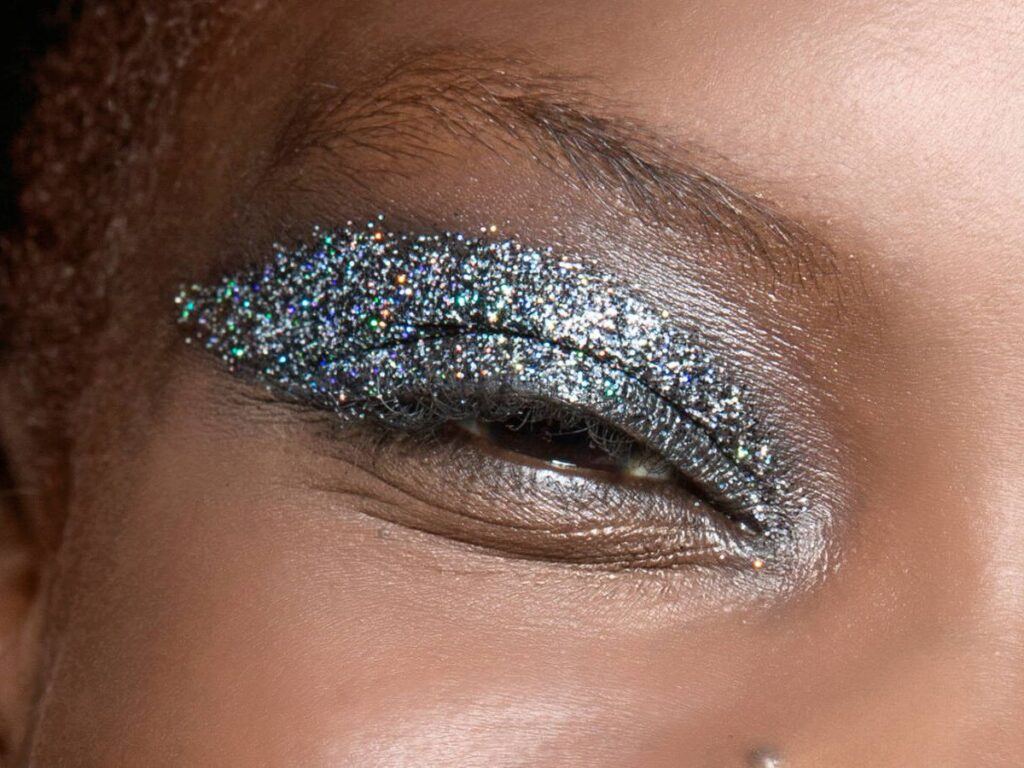 Así como sucede con las piedras, el glitter también será protagonista. Se utilizará creando sombras opacas que se alargan homogéneas de principio a fin.