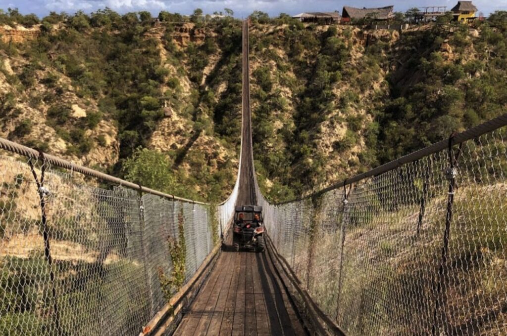 Ostenta el título de ser el puente de madera colgante más largo del mundo, con una vista única del paisaje semidesértico de Cabo San Lucas, en la península de Baja California. Se usa para vehículos todo terreno.