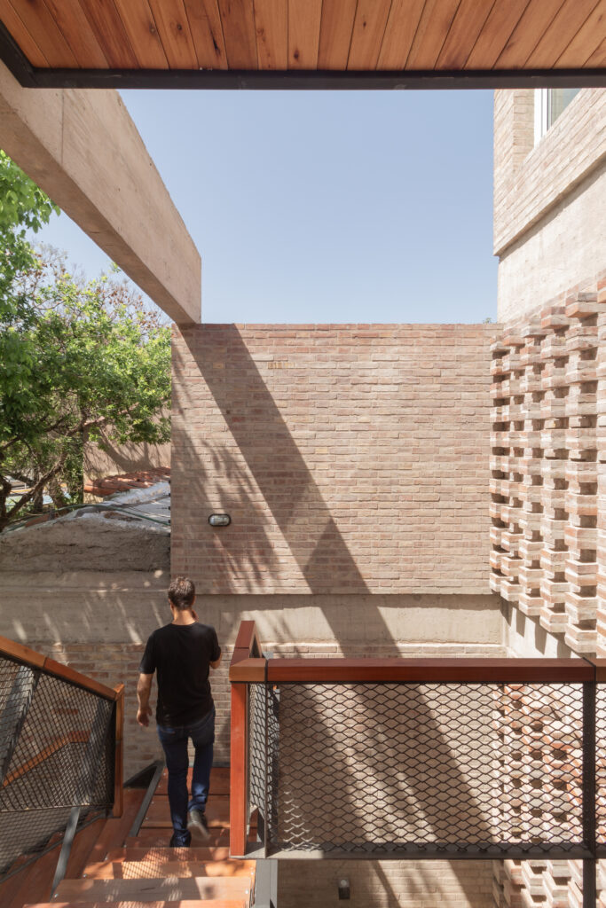 Cada unidad tiene su propia expansión, con patios para aprovechar la naturaleza. Se utiliza cribado en la fachada principal para abrir ventanales al parque, al mismo tiempo proporcionar privacidad y seguridad construidos artesanalmente con la materia predominante en la obra.