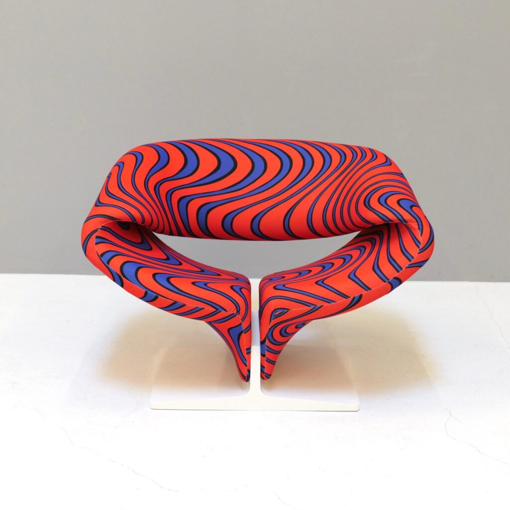 Sillón Ribbon: Fue diseñado por Pierre Paulin en 1966. Su forma orgánica y curvilínea desafía las convenciones tradicionales de los sillones y crea una experiencia visual y táctil única. Este sillón resultó ganador del premio “Gold Medal” en la Triennale de Milán en 1967 y es un símbolo del diseño vanguardista de la época.