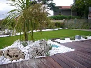 Estéticamente, aporta una sensación de sofisticación y serenidad a cualquier espacio. Los tonos naturales y texturizados de la piedra pueden complementar tanto entornos naturales como diseños más contemporáneos. Por ejemplo, el uso de piedras de colores neutros y formas geométricas puede aportar un aire moderno y elegante, mientras que las piedras más irregulares y de tonos terrosos evocan un estilo rústico y campestre. La elección del tipo de material y su disposición estratégica permite a los jardineros y diseñadores crear ambientes personalizados, que reflejan la personalidad y el estilo de los propietarios.
