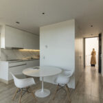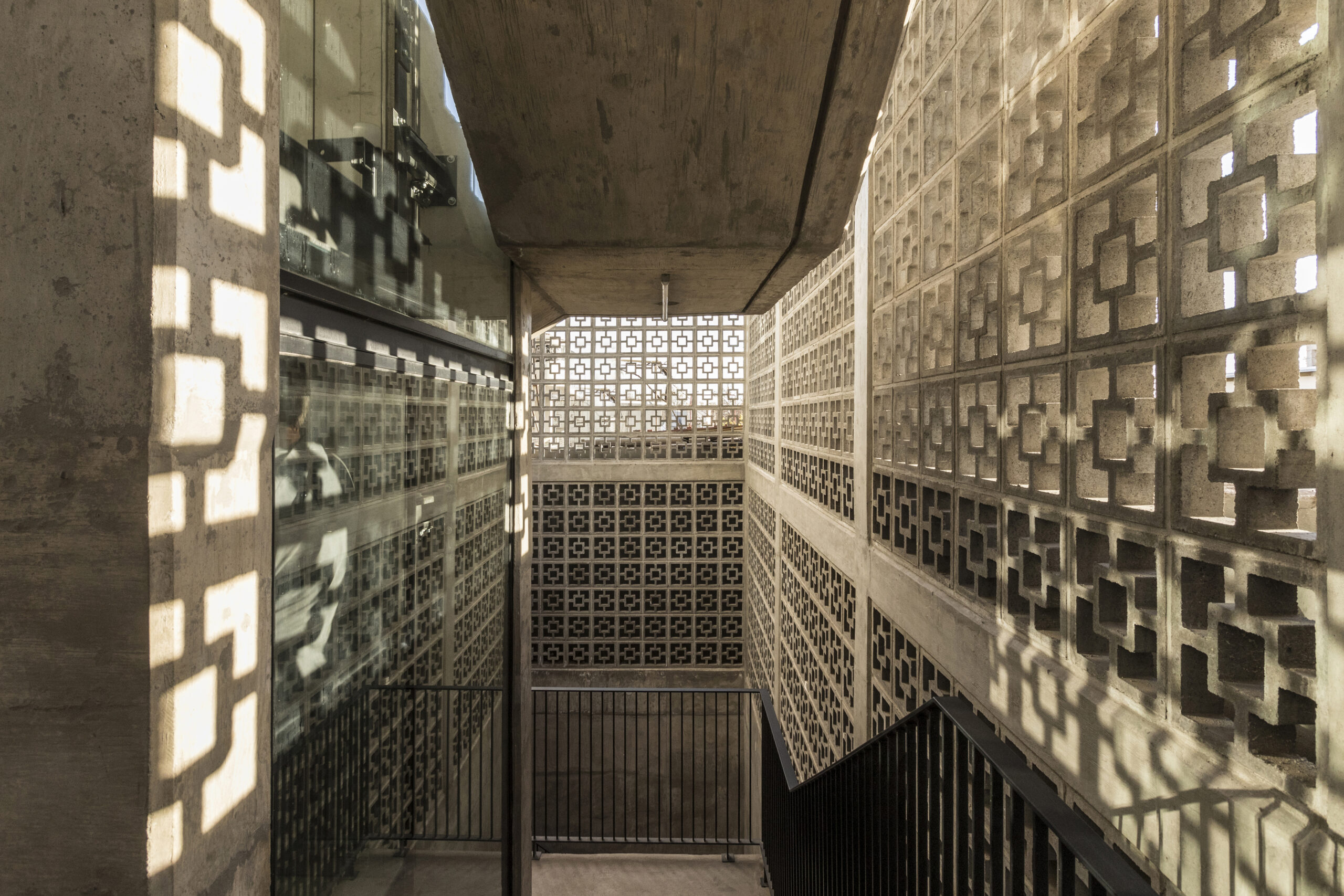 La elección de elementos estructurales y materiales se orientó a lograr integración espacial, durabilidad y bajo mantenimiento. Los parasoles filtran la luz natural, brindando confort y una sensación cálida de resguardo. Los grandes paños de vidrio amplían los límites visuales, otorgando amplitud a cada unidad.