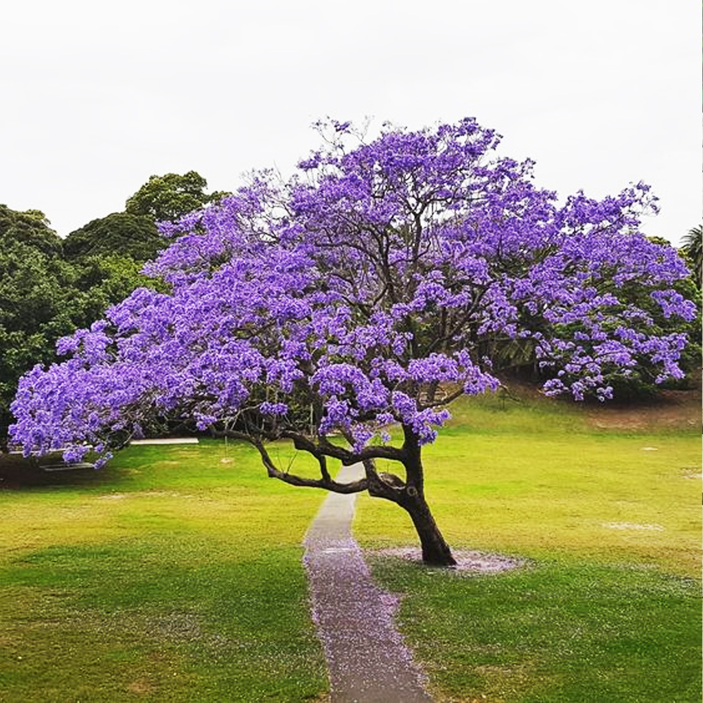 El jacarandá encabeza esta selección. Su floración primaveral puede durar hasta 30 días, convirtiendo cualquier espacio en un espectáculo visual de flores violetas que cubren completamente la copa antes que aparezcan las hojas. Originario del norte argentino, alcanza entre 6 y 10 metros de altura y se adapta perfectamente a nuestro clima. Solo necesita exposición solar y riego moderado. Su color violeta genera una sensación de calma y creatividad única.