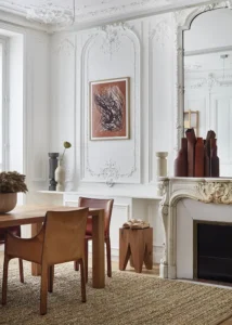 Para aquellos que buscan un estilo más refinado y con un aire de tradición, el uso de molduras clásicas es la elección perfecta. Este recurso, que ha sido un pilar en la decoración de interiores por siglos, vuelve con fuerza para añadir distinción y elevar la presencia de las paredes. Las molduras no solo enmarcan la arquitectura de la habitación, sino que también añaden una sensación de altura y profundidad. Se pueden pintar del mismo color que la pared para un efecto sutil y elegante, o en un tono contrastante para destacarlas. Son ideales para crear una atmósfera de calma y sofisticación, y se adaptan a la perfección tanto a estilos clásicos como modernos, demostrando que la elegancia nunca pasa de moda.