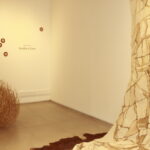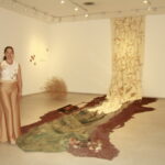 La artista trabaja con tintes naturales obtenidos de hojas, cáscaras, agua de deshielo y desechos orgánicos recolectados con cuidado; cada pigmento es fruto del tiempo, de la paciencia y de la relación profunda con la naturaleza (Lali Tinte Co-curadora).