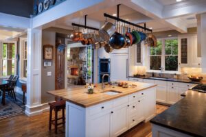 -Pot racks colgantes (de techo): Liberan totalmente el espacio de las alacenas y convierten tu batería de cocina en un elemento decorativo. Son excelentes para cocinas grandes o para cocinas con islas centrales.