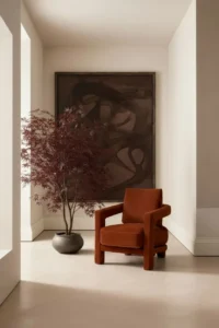 - Colores profundos para carácter: Tonos ricos y saturados como el burdeos intenso, el verde oliva profundo o el marrón chocolate confieren a la butaca un aire de lujo y drama. Estos colores funcionan excepcionalmente bien como contraste en salones de paredes blancas o grises claros.