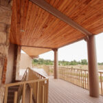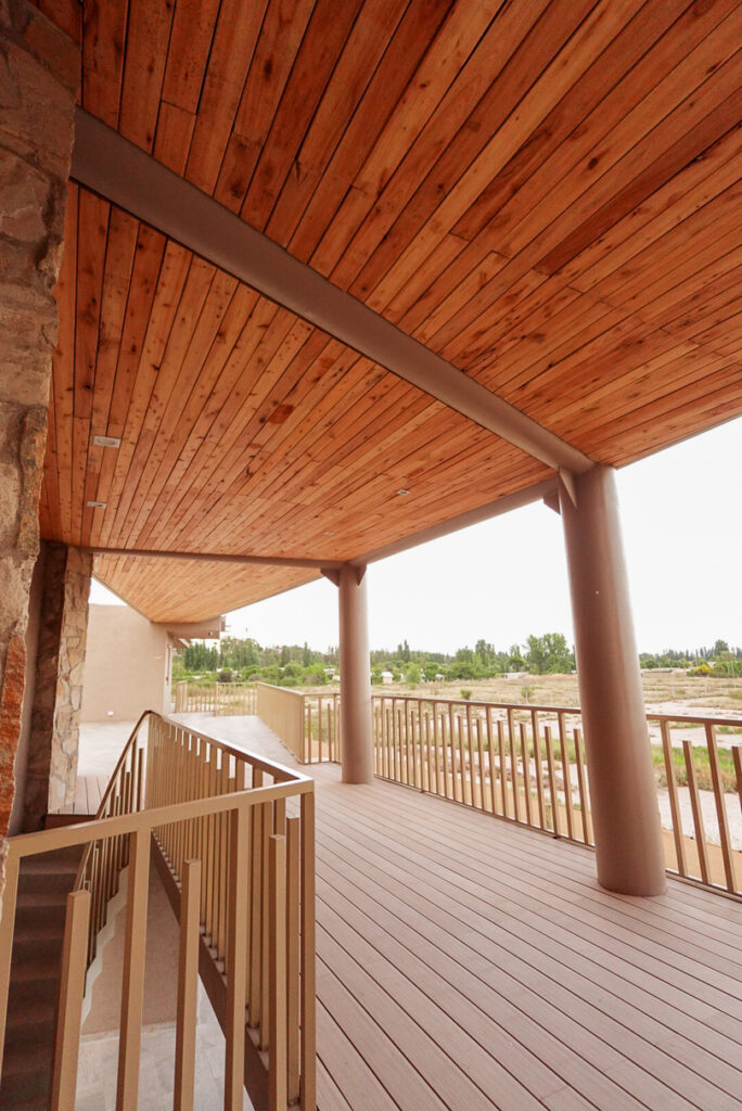 Por su lado, en los baños públicos, el viñedo fue inspiración, ya que el espacio monocolor verde con cielorraso realizado con sarmientos , generó gran impacto visual, y la sensación de estar en dentro del viñedo.