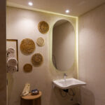 Luminarias con formas orgánicas y tejidas, mobiliarios en tonos terrosos y de formas simples, junto a cuatro tipologías de habitaciones (que siguen el hilo conductor del hotel) fueron pensados para generar desde lo micro a lo macro del proyecto, un espacio de calma y contemplación.