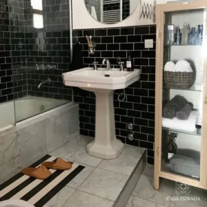 -Contemporáneo: Colores plenos en acabado mate, como el negro o el azul noche, para un baño con personalidad y fuerza.