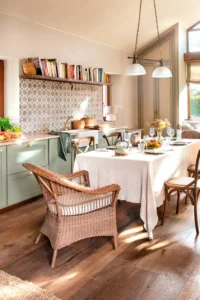 - La tendencia: Se busca la “imperfección” del azulejo artesanal (tipo Zellige) o el carácter de los azulejos con motivos vintage. Estos revestimientos no solo protegen las paredes, sino que actúan como una obra de arte por derecho propio en cocinas y baños.